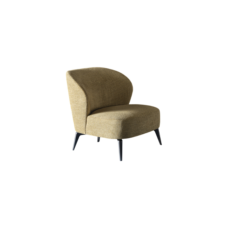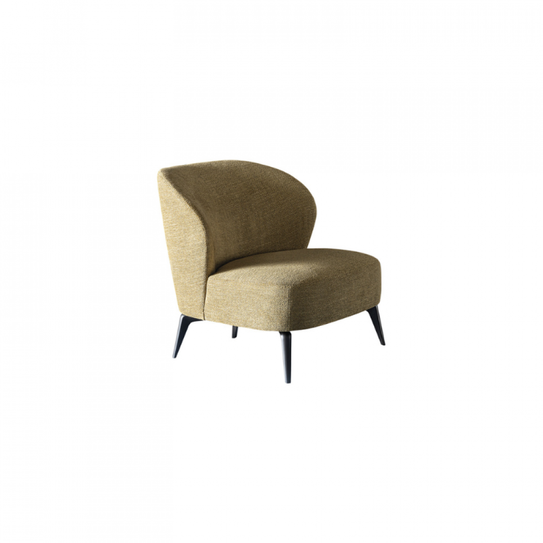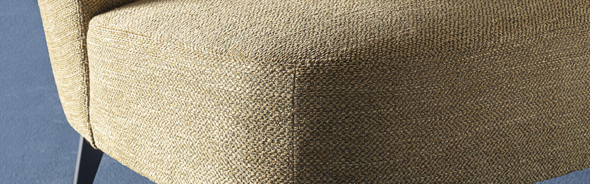 A padded armchair that combines design and comfort, thanks to its enveloping backrest.