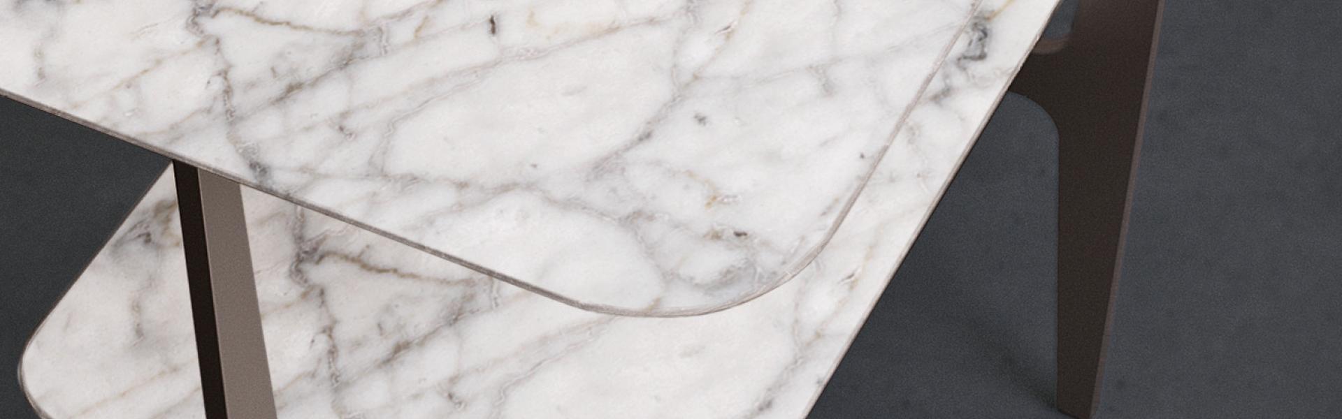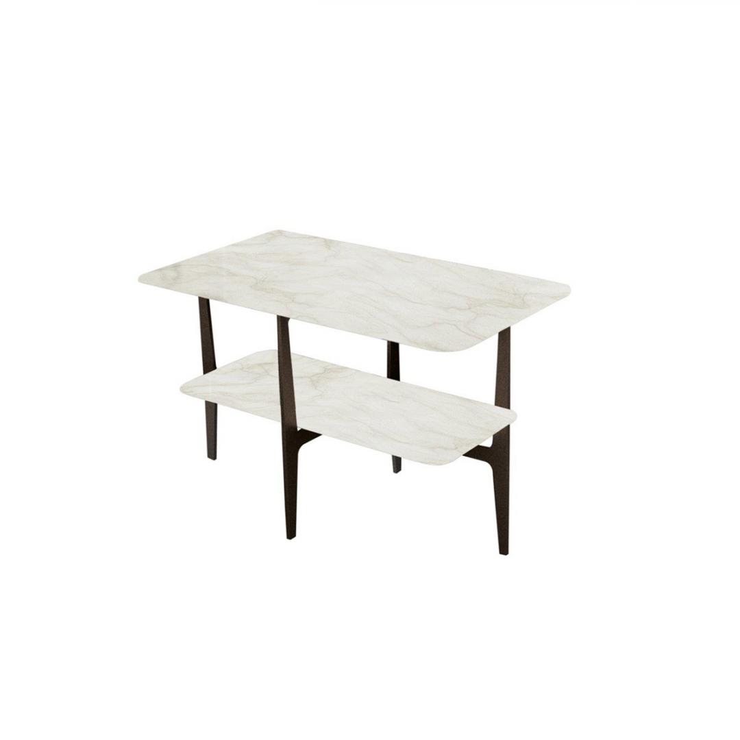 A family of small tables and a low table with a bronze painted metal structure, embellished with precious marble tops, to be chosen among those proposed, or with wooden tops. They furnish the living area with an elegant simplicity in combination with all the pieces of the collection, easily fitting in both residential and hospitality interiors.