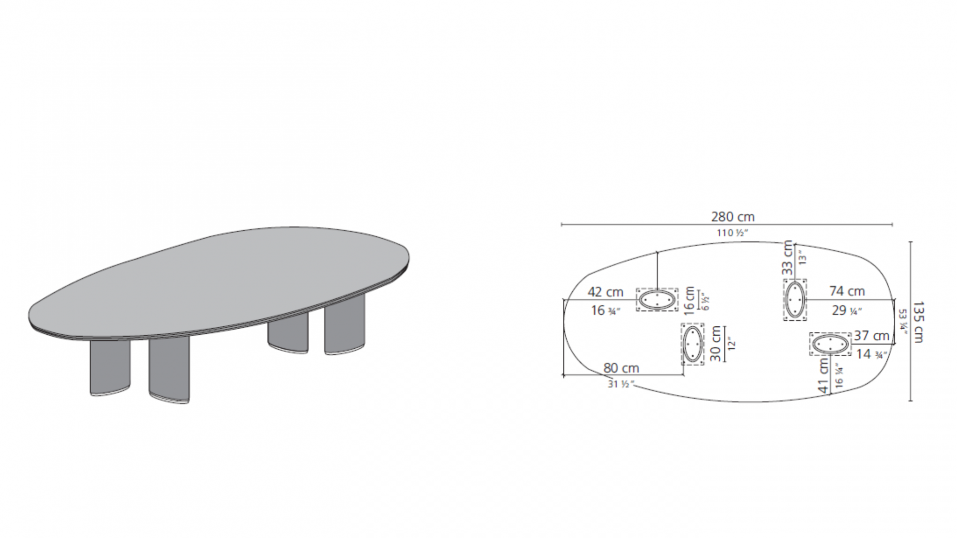 A family of modular tables with a refined design, characterized by precious oval legs covered in leather - with tailored seams that give quality and elegance - or covered in wood, or lacquered. The tops, of various sizes and shapes are in precious marble or , and can also be custom-made, of large dimensions.