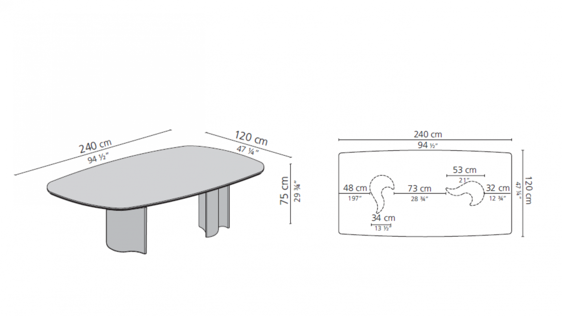 Tabletop: marble, birch burl, solid iroko wood (for outdoor version).