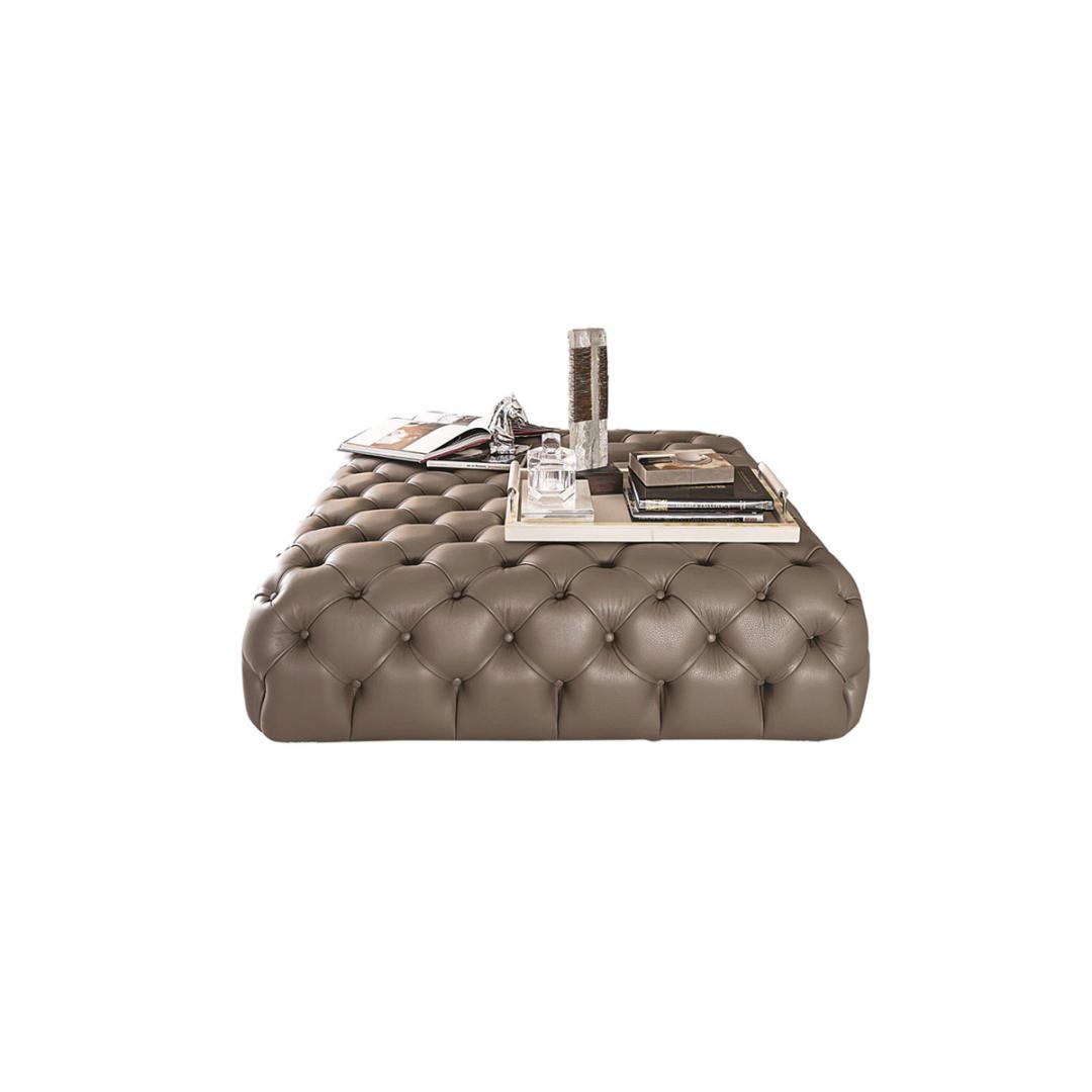 Pouff imbottito caratterizzato dall’elegante lavorazione manuale e artigianale capitonné che conferisce un’eleganza senza tempo.