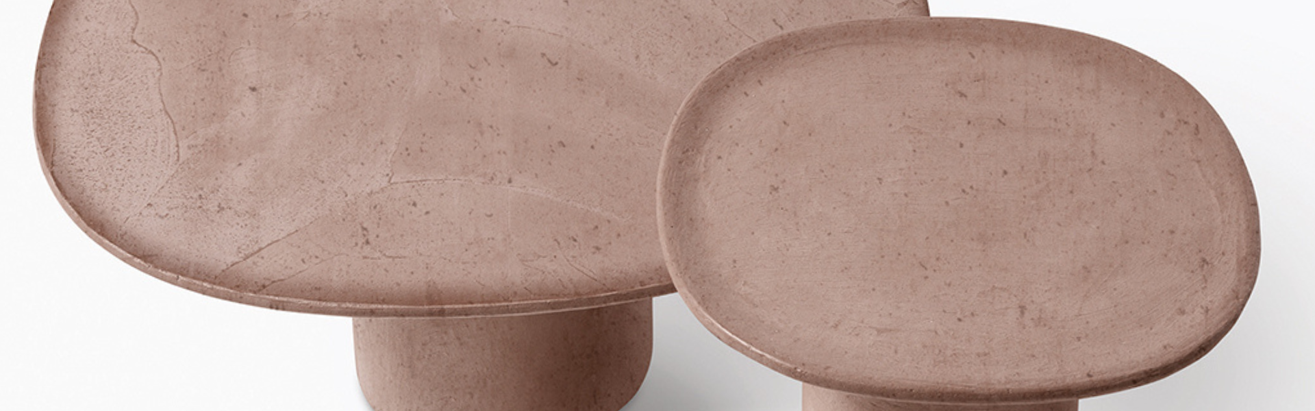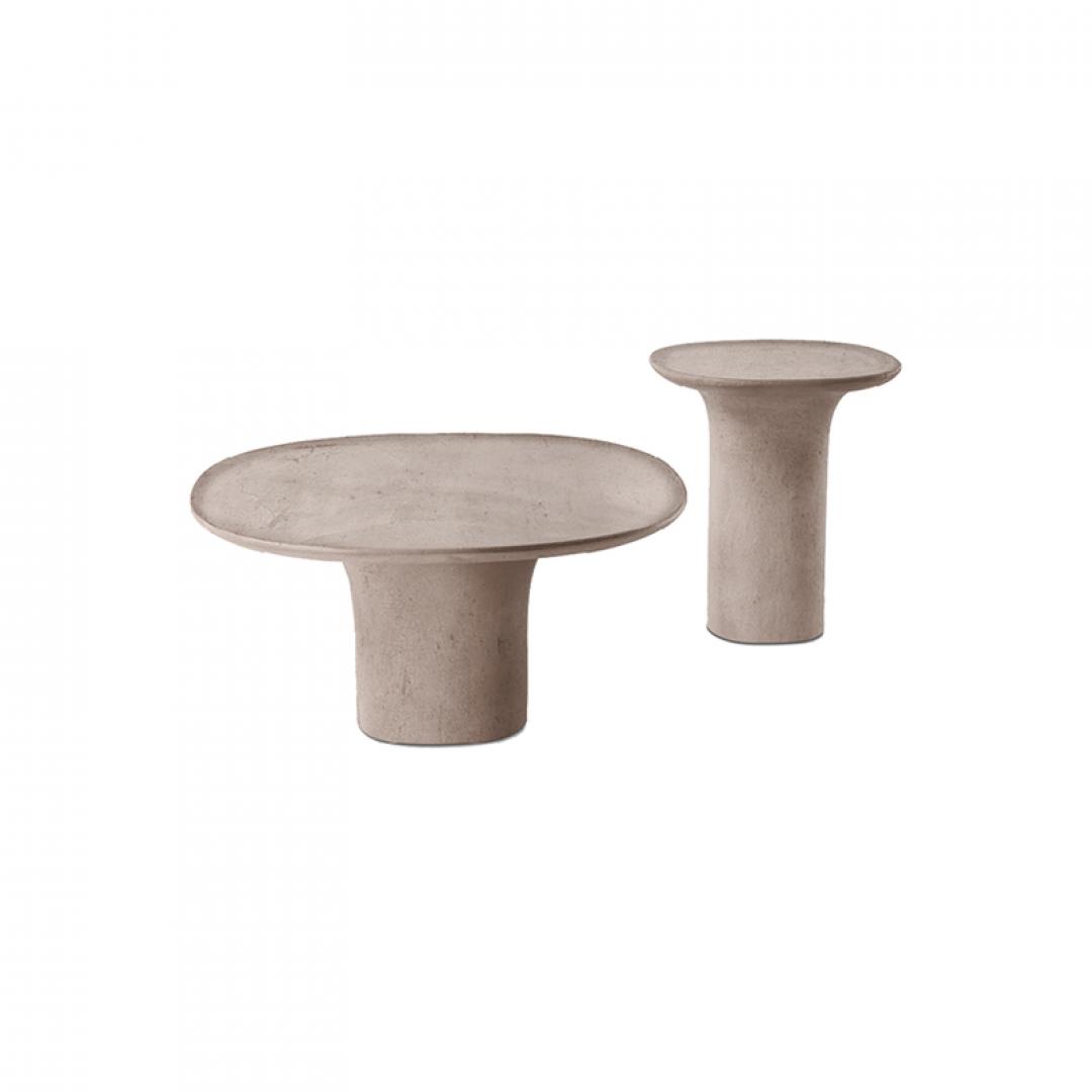 Tavolini in cemento dalle nuances sfumate e delicate,